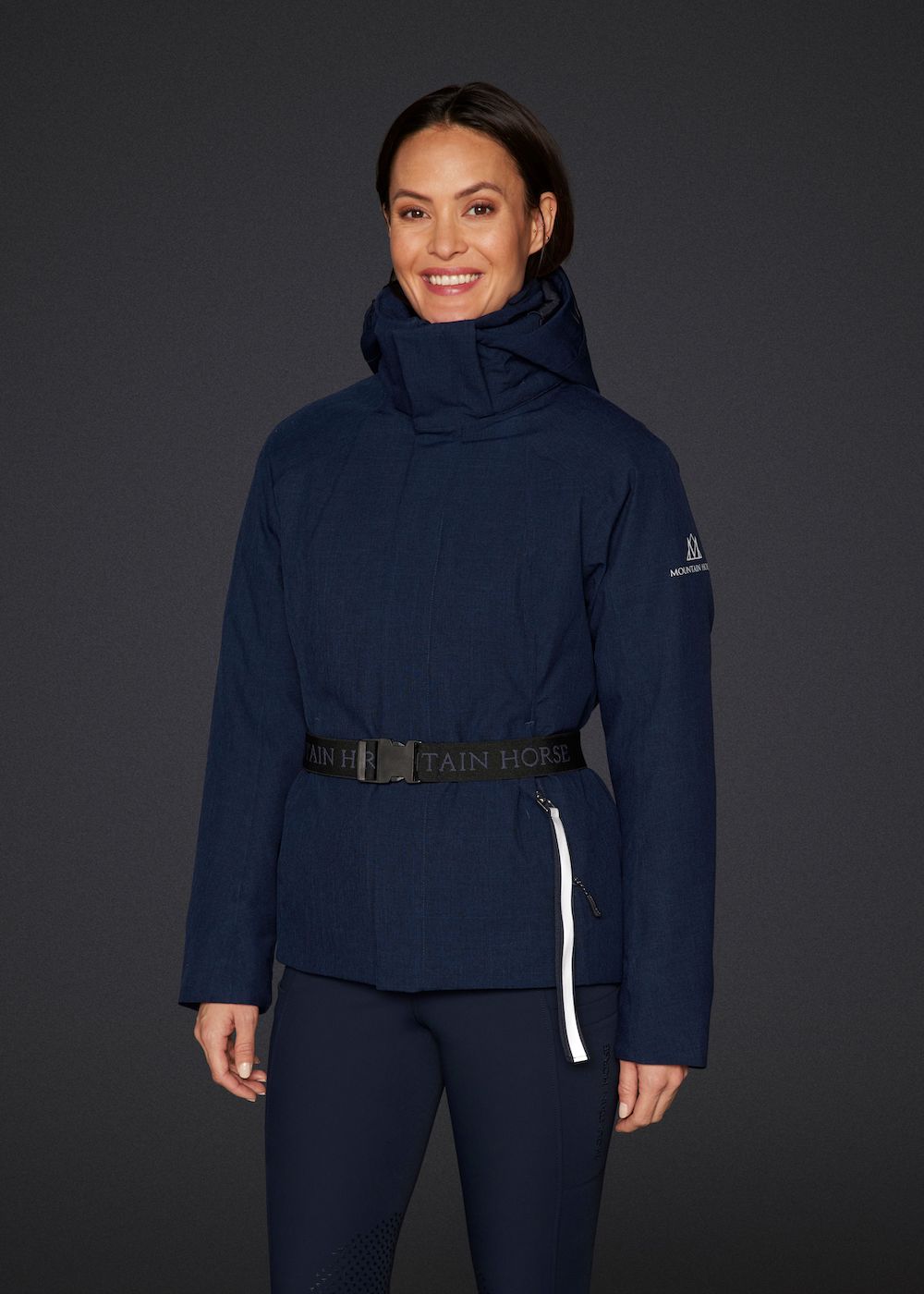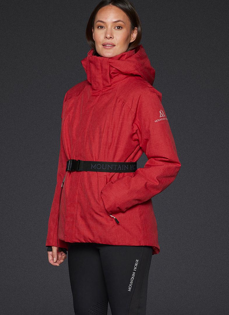 Zimowa kurtka jeździecka wykonana z lekkiego wodoodpornego materiału.