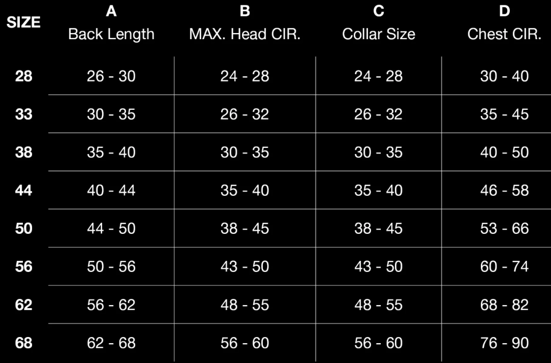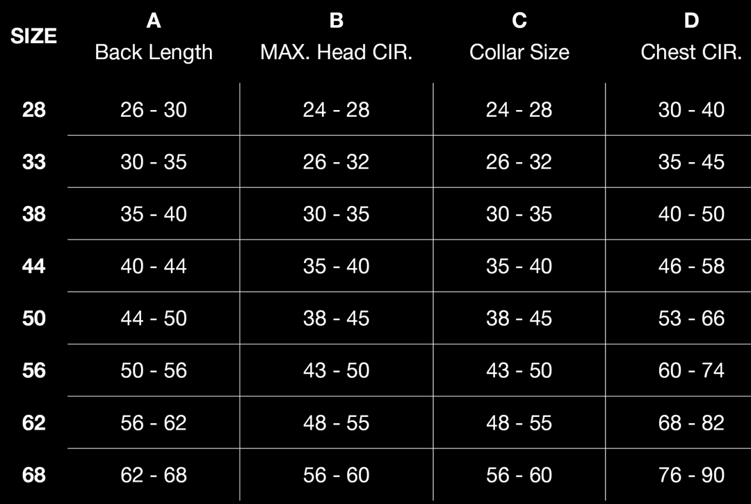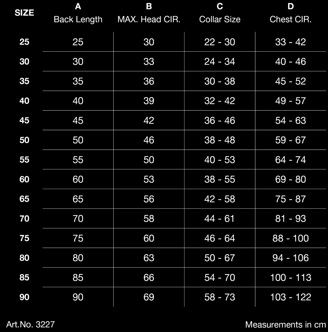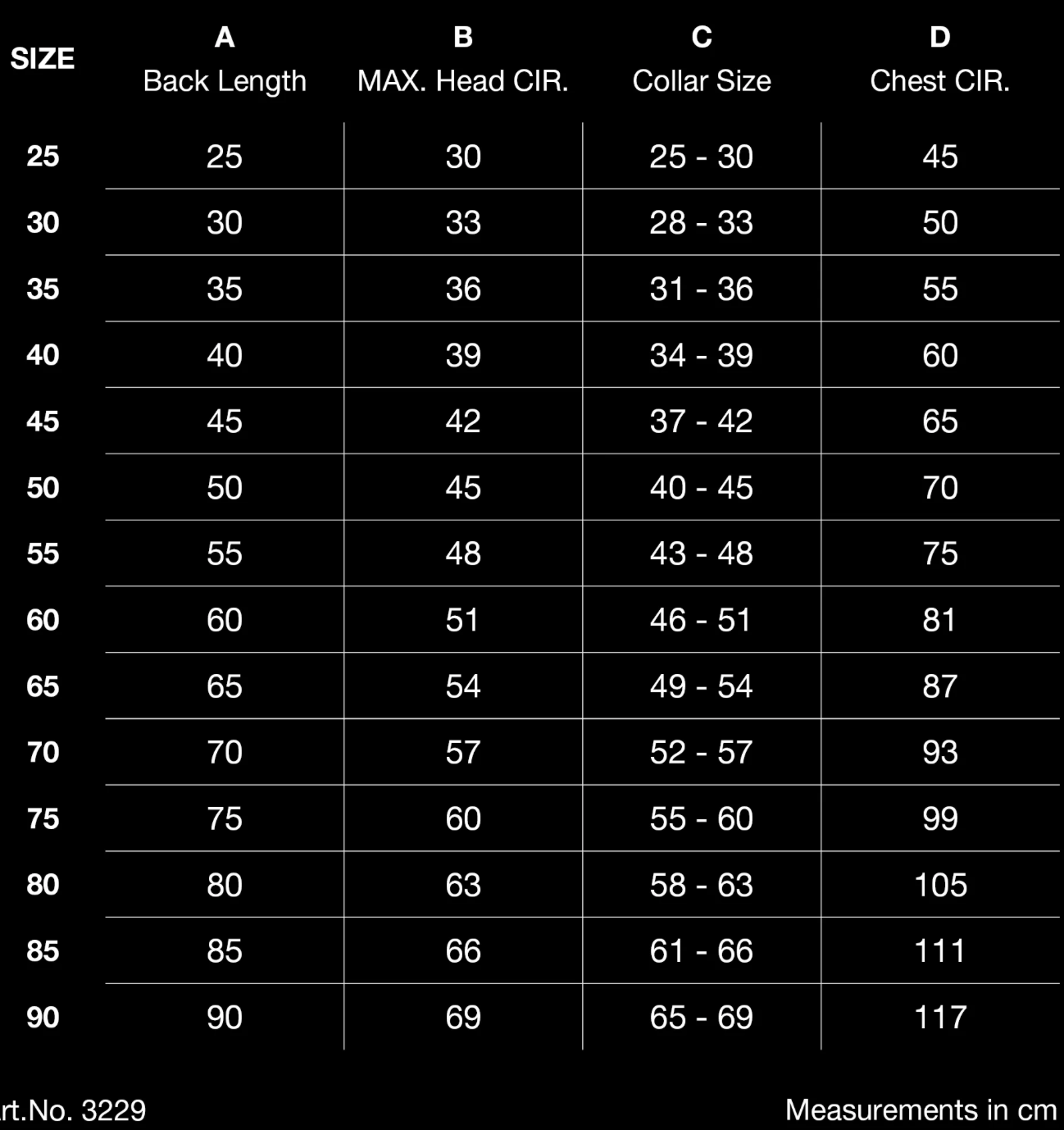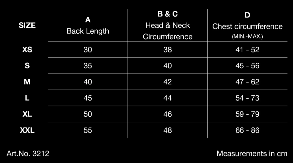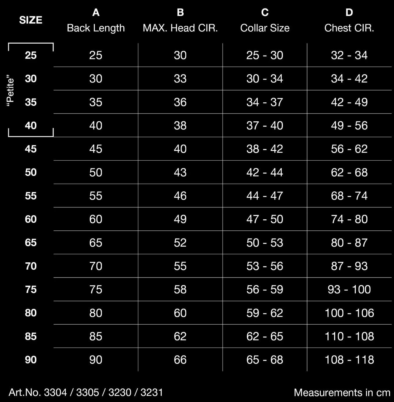 Tabele rozmiarów Back on Track - kurtki dla psów