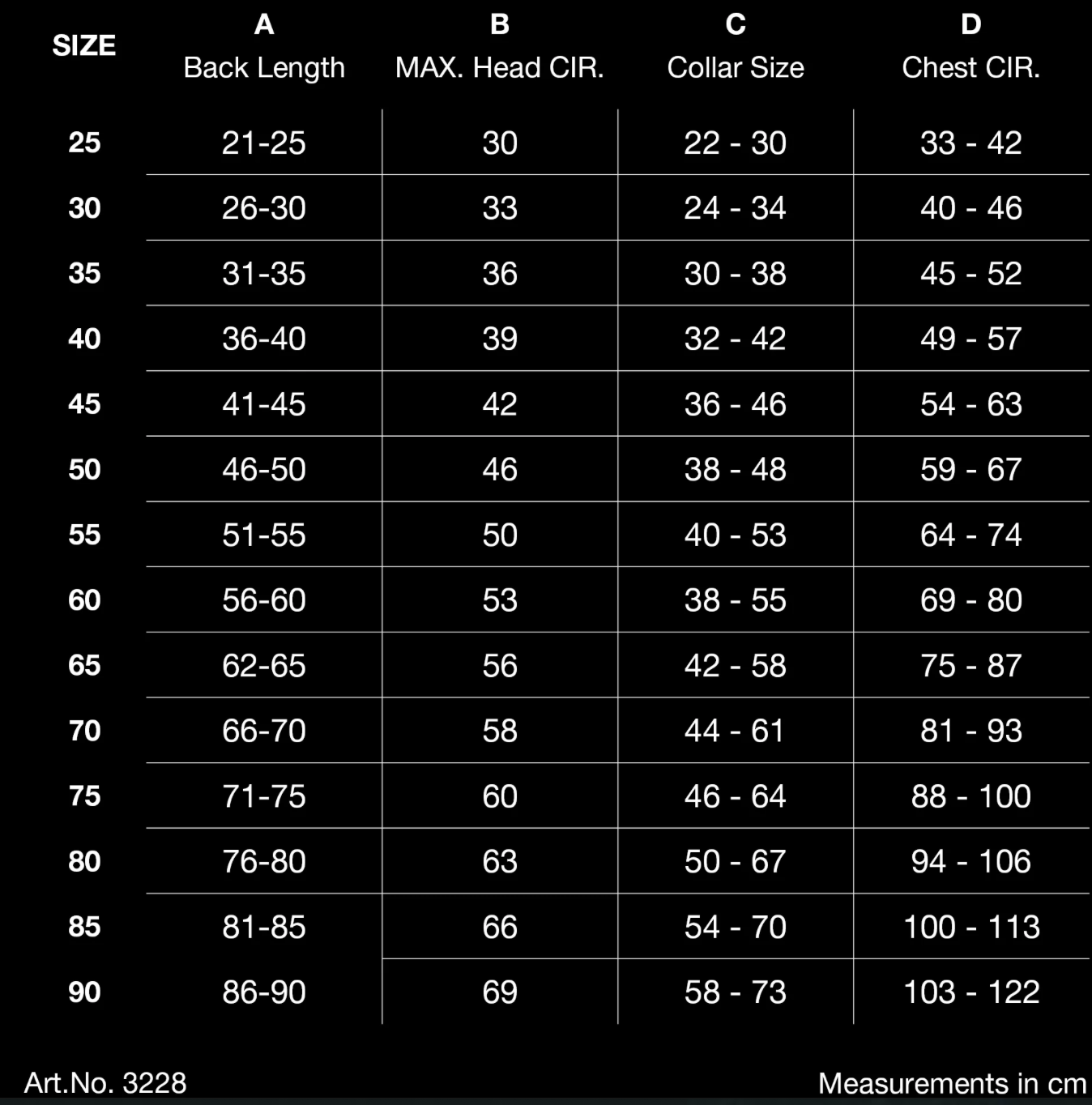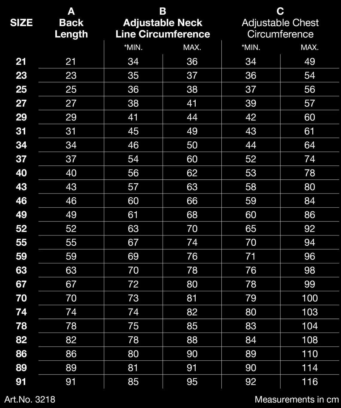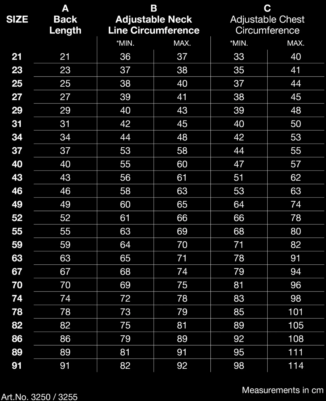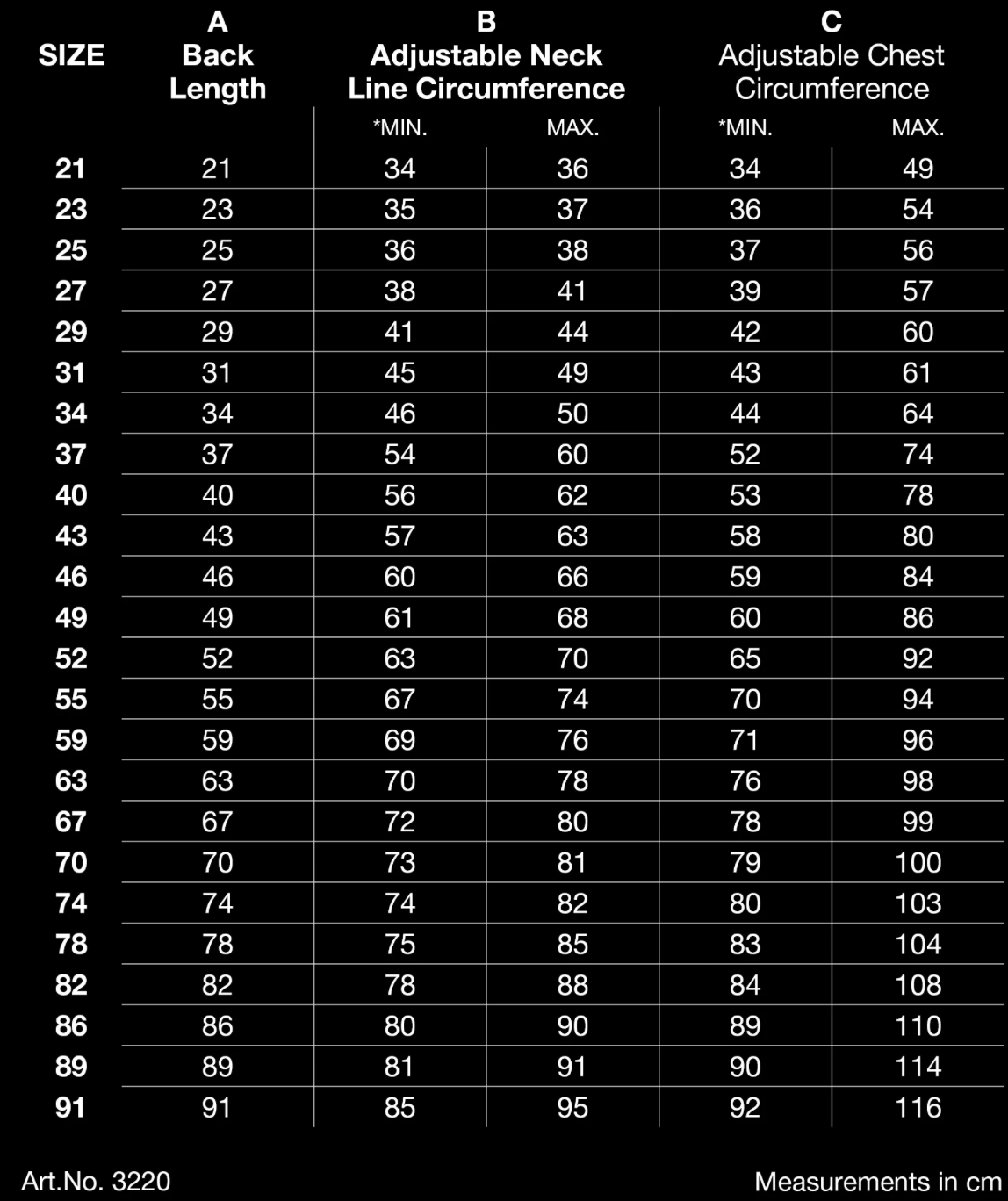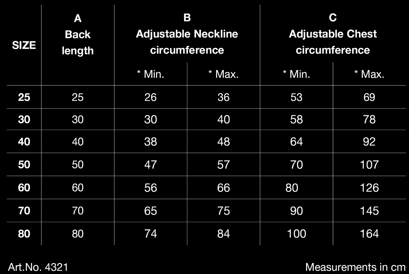 Tabele rozmiarów Back on Track - kurtki dla psów